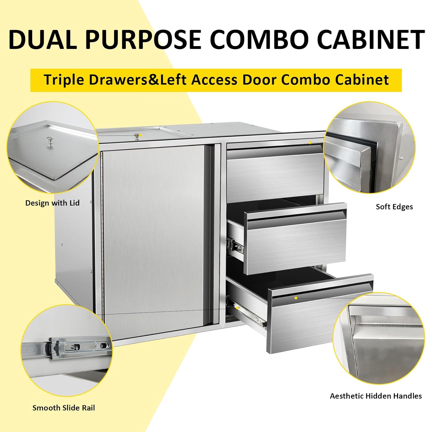 Maximize your outdoor kitchen storage with. Our built-in drawer cabinet is crafted from durable 304 stainless steel for a rust-resistant, weatherproof solution. It installs seamlessly behind outdoor kitchen doors and into existing outdoor cabinets, saving space while keeping essentials organized and accessible. This heavy-duty unit is the perfect upgrade for any stainless steel kitchen island, designed to withstand the elements and last for years.